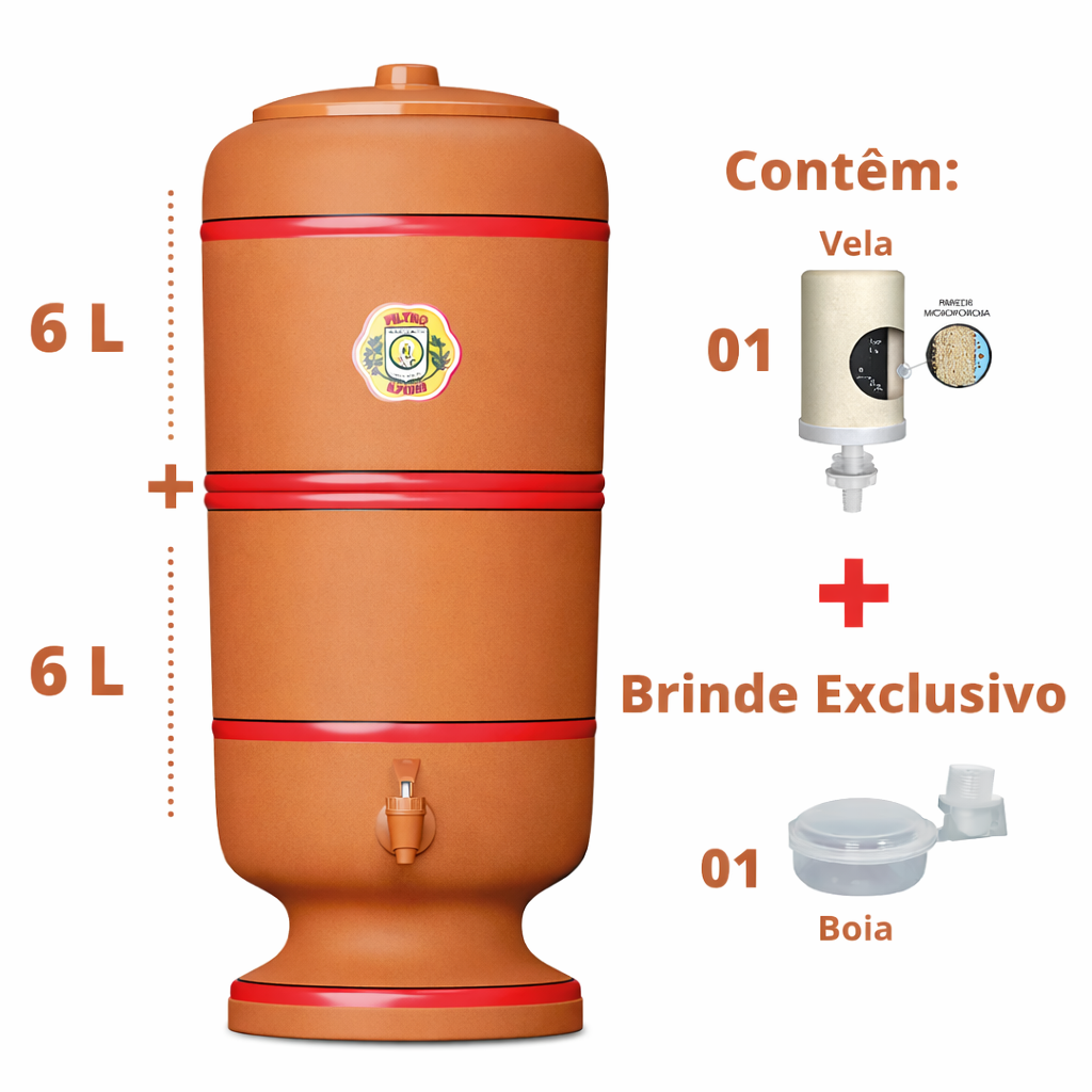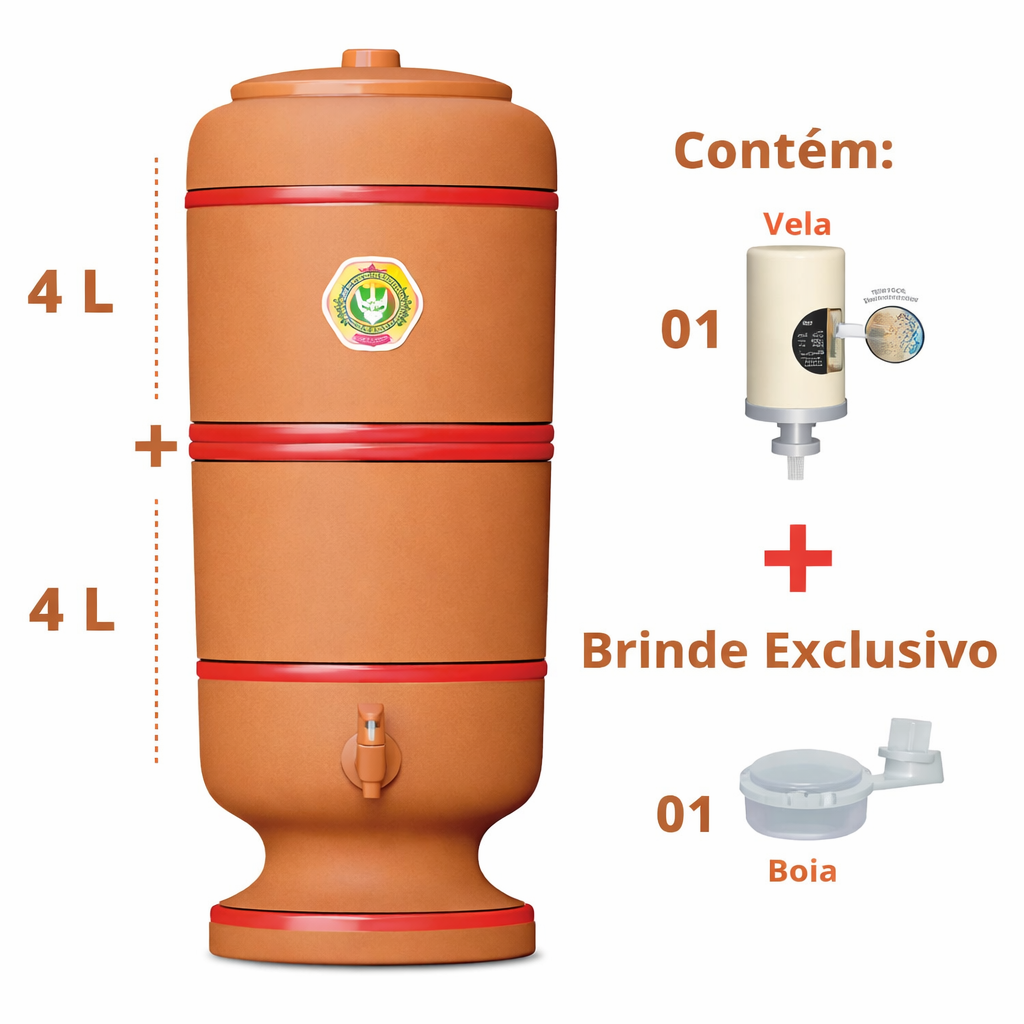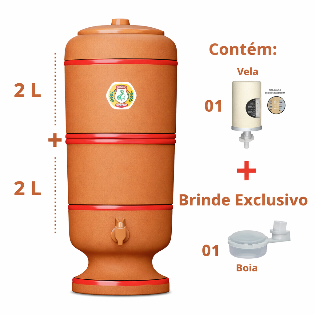 Filtro de Barro Sao Pedro - 16 litros + 1 velas Tripla Acao e 1 boia